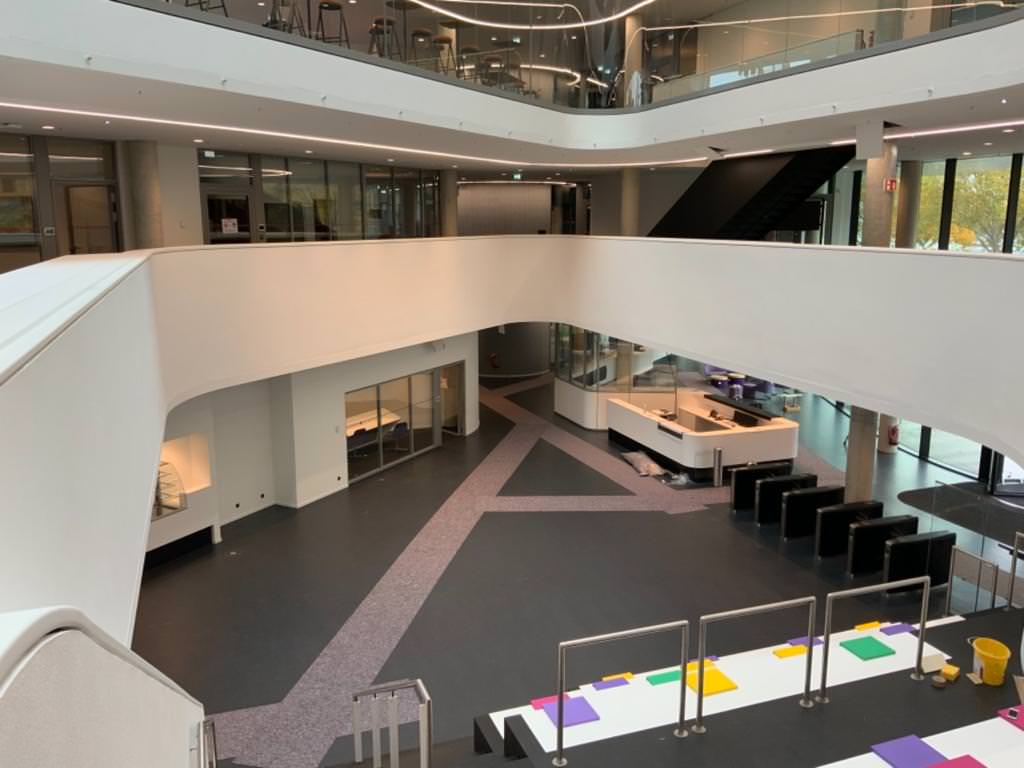 BV: Atrium im Chemiepark Leverkusen Auftragsvolumen: ca. 500 m² Kalkzementputz mit Filzputz Fertigstellung: Januar 2021